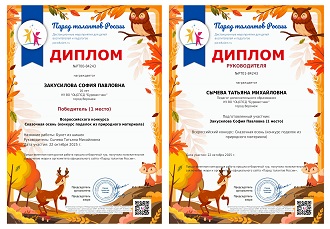 Наши воспитанники под руководством педагогов дополнительного образования Центра "Буревестник" создали и представили на Всероссийский фестиваль "Парад талантов" прекрасные творческие работы и заняли почётные 1 места в номинациях "Сказочная осень" и "Осенние картины".