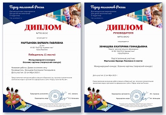 Наши победительницы смогли передать в своих работах волшебную и завораживающую атмосферу осенней природы. Мы искренне поздравляем наших талантливых участниц и любимых педагогов с заслуженной победой и желаем им дальнейших творческих успехов. Пусть ваши умелые руки и красота души радуют всех вокруг!