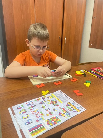 Задание "Сложи квадрат", разработанное по методике Никитина, очень увлекло наших юных воспитанников: они учились анализировать и находить различные решения.