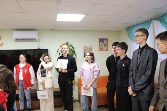 На мероприятие «В мире профессий» в Центр пригласили ребят из волонтёрского отряда "Молния", представляющих МБОУ СОШ №100, а также студентов ГБПОУ, состоящих в объединении "Движение первых". Волонтёры совместно с педагогами подготовили увлекательное мероприятие, в котором дети в игровой форме разобрали особенности основных профессий. Дети побывали на разных «станциях», каждая из которых предлагала интересные задания, посвящённые профессиям. Это позволило ребятам не только узнать о профессиях, но и проявить свои навыки в командной работе, креативности и логическом мышлении. По итогам всех испытаний волонтёры из "Движения первых" наградили ту команду, которая лучше всего справилась с поставленными задачами.